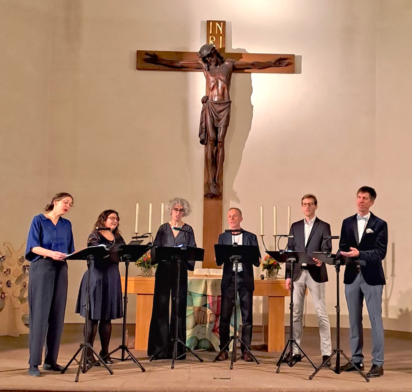 Musikalisch überzeugte Vocalconsort Mainz vor allem durch eine bemerkenswerte Homogenität der Stimmen. Die sechs Sängerinnen und Sänger verschmolzen zu einem geschlossenen Klangkörper, der selbst in komplexen polyphonen Passagen stets transparent blieb. Besonders beeindruckend war die außergewöhnlich saubere Intonation, die den oft anspruchsvollen harmonischen Verläufen große Klarheit verlieh. Hinzu kam eine nuancenreiche und fein abgestufte Dynamik, mit der die unterschiedlichen Stimmungen der Werke – vom leisen, nachdenklichen Murmeln bis hin zu kraftvollen Klangwellen – eindrucksvoll gestaltet wurden.