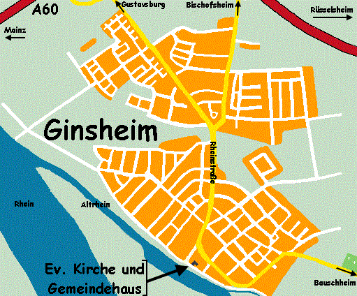 Die Evangelische Kirche Ginsheim und das Gemeindehaus (hier ist unser